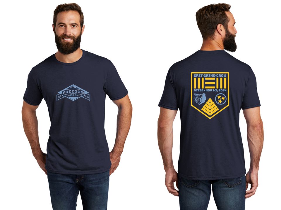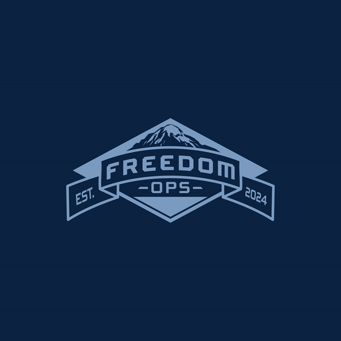 Front Logo: Freedom Ops in Light Blue ink.