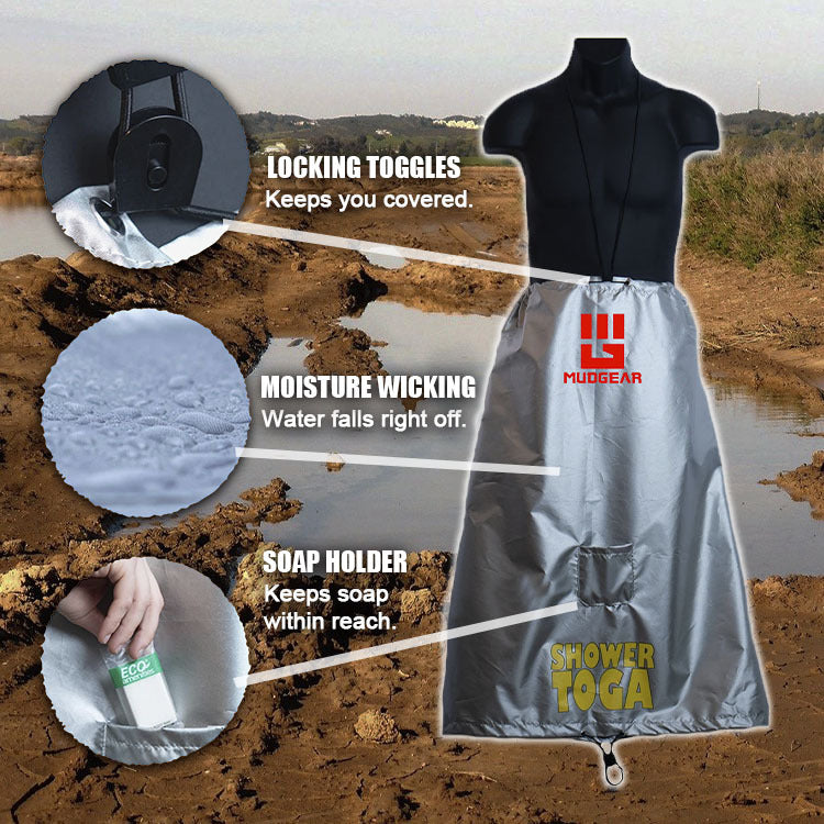 The MudGear Shower Toga is the best way to get clean discreetly and easily after your mud run, or other outdoor adventure.