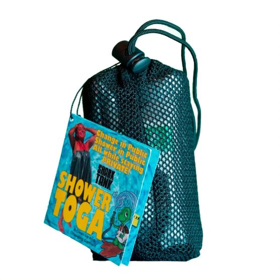 Once you're done, you can put on new clothes inside the toga, and remove it to create a nice carrying bag for your dirty gear. Check out the video to see how it's done!