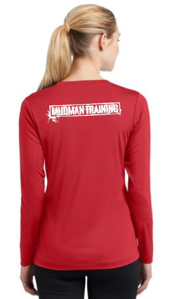 MudMan Training Sport-Tek Ladies Long Sleeve PosiCharge Competitor V-Neck Tee (Red) Pre-Order