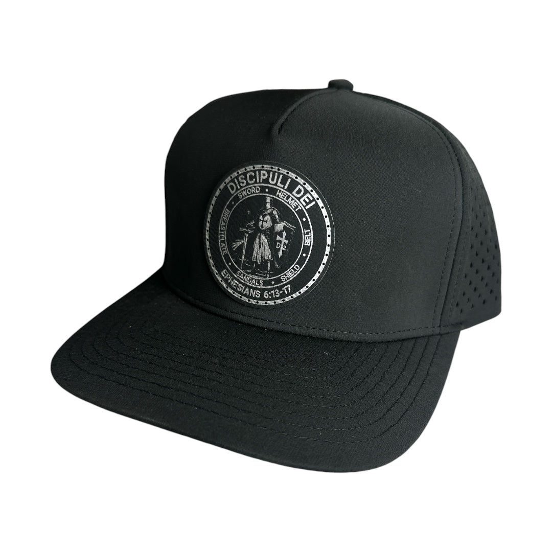 The hat is medium profile, water resistant, and snapback closure. It comes in a curved bill and a 7-panel flat bill. The leatherette patch is laser engraved, offers the look and feel of genuine leather, and is durable enough for the rigors of daily use. These patches are stitched on to make this hat the ultimate wash and wear hat!